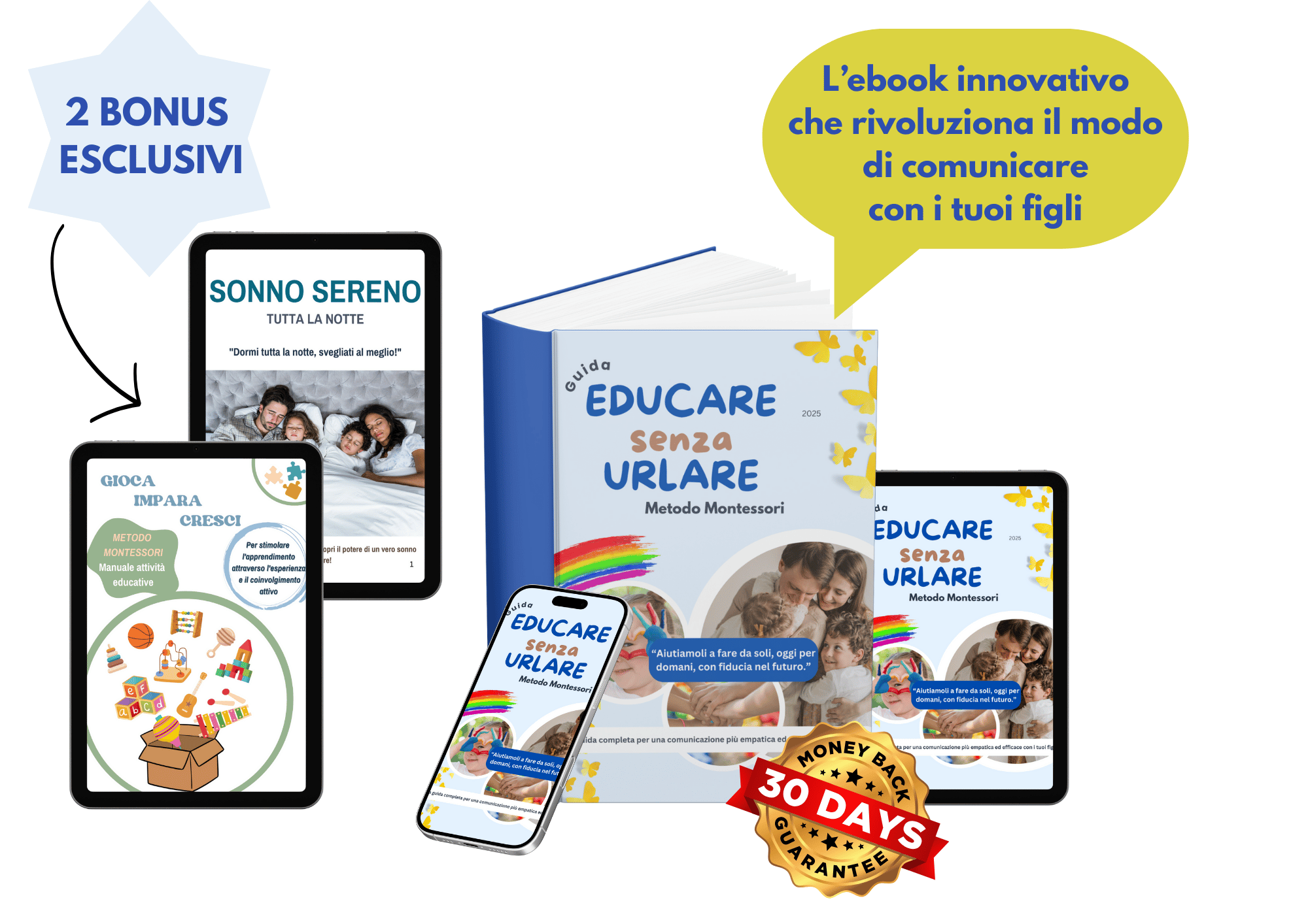 Questo ebook "Educare Senza Urlare" unisce la concretezza del metodo Montessori con soluzioni reali per la vita quotidiana dei genitori moderni. Non troverai solo teoria o frasi motivazionali, ma:
